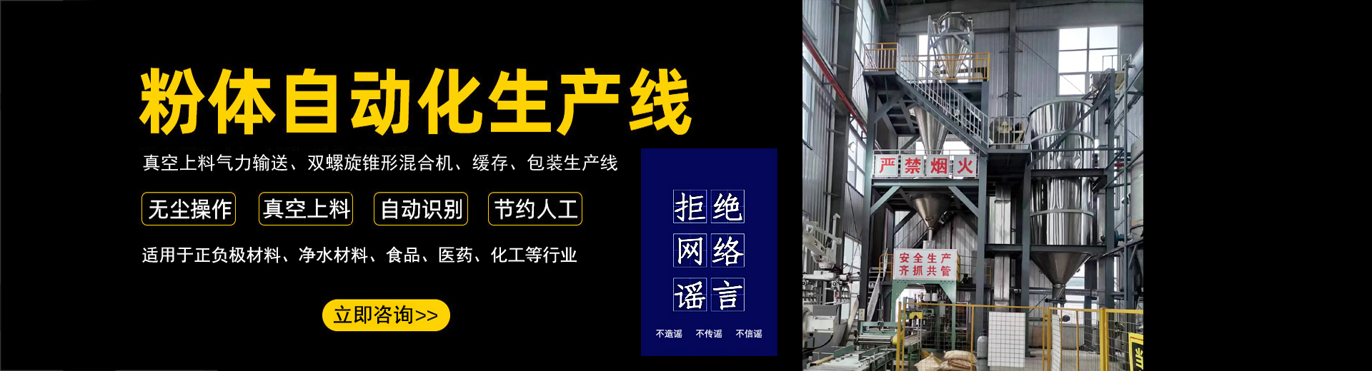 公司在制造混合設(shè)備和各類機(jī)械氣力輸送生產(chǎn)線的經(jīng)驗(yàn)沉積下,自主開發(fā)了全自動(dòng)化生產(chǎn)線。實(shí)現(xiàn)了自動(dòng)化拆垛、自動(dòng)化輸送、自動(dòng)化配料、自動(dòng)化秤重混合、自動(dòng)化篩分、自動(dòng)化包裝、自動(dòng)化碼垛一系列全自動(dòng)化生產(chǎn)線...